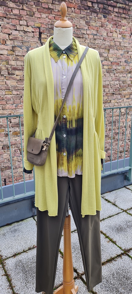 Look des Tages mit dem erst kürzlich eingetroffenen Feinstrick-Cardigan aus Biobaumwolle und Viskose. Eine sehr angenehm tragbare, nicht zu warme Mischung. Die Jacke ist tailliert gestrickt und wird offen getragen. Bei uns gibt es heute die farblich perfekt passende Viskosebluse sowie eine olivgrüne Minxhose dazu. Denken Sie morgen an uns? Wir sind schon in heller Aufregung, denn morgen ist Modenschau! Um 18:00 geht es los, auch Dreock Optik wird dabei sein. Außerdem kommt der Weihnachtsmann und lädt zum Gewinnspiel ein. Unsere Kollegen vom Eiscafé am Stübchen servieren heißen Glühwein, aber natürlich auch andere Getränke und schöne Naschereien.