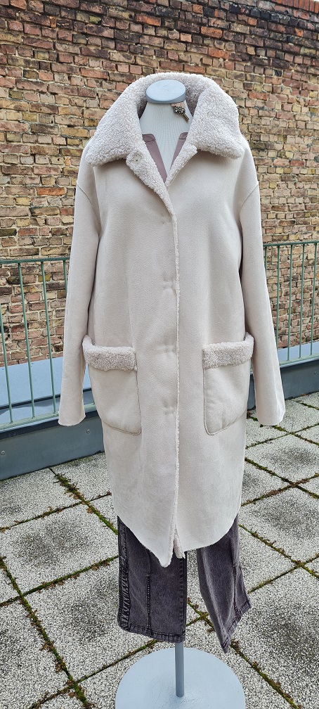 Look des Tages, mit unserem letzten, wunderschönen Wendemantel von White Label, jetzt noch in der Größe 42 bei uns oben erhältlich. Er ist innen mit einem weichen Teddyfell ausgekleidet und außen mit einem Fakeleder in Wildlederoptik. Oder eben anders herum. Er lässt sich mit großen Druckknöpfen verschließen und ist laut Hersteller bei 30° maschinenwaschbar. Preis: EUR 229,00, wir machen machen auch Paketversand, Porto geht innerhalb von Deutschland auf uns, außer bei reduzierten Teilen).Unser Gastmodel wollte ihn jedenfalls nach der Vorführung zur besinnlichen Modenschau fast nicht mehr her geben.