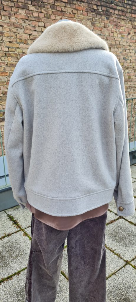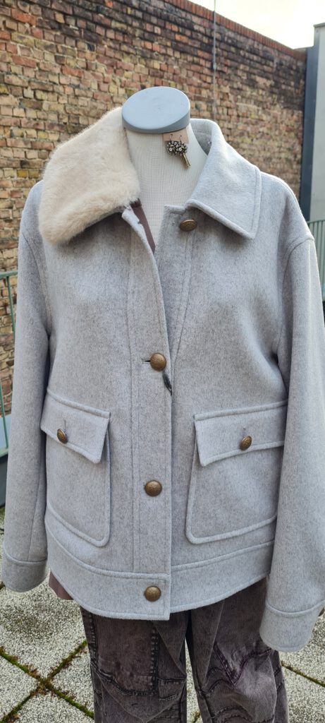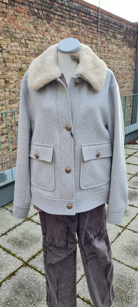 Look des Tages mit der stylischen Winterjacke in einem hellen Grauton von White Label. Sie ist aus einer Wollmischung gemacht, kratzt aber nicht. Sie hat Taschen und einen leicht abnehmbaren Fellkragen. Damit lässt sie sich bis weit ins Frühjahr hinein tragen. Wir haben sie noch in den Größen 40 und 42 bei uns oben. Das erste Foto zeigt sie während der Besinnlichen Modenschau am 13.12.2025, darunter folgen noch Produktbilder. Beachten Sie dazu bitte auch unseren Beitrag vom vergangenen Freitag. Wir wünschen Ihnen einen schönen 4. Advent.