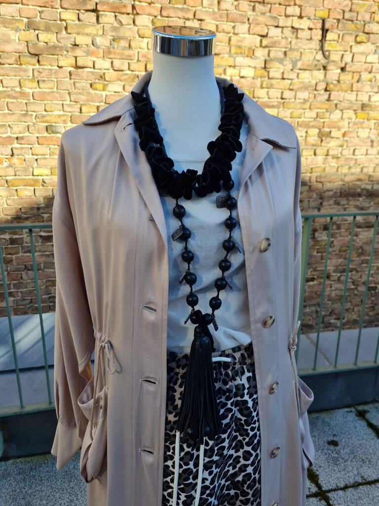 Look des Tages mit dem edlen, leichten Sommermantel von 10Days — jetzt im Sale bei uns oben – hier in der Kombination mit dem neuen Leo-Rock. Dazu gibt es ein halbtransparentes, weißes Blusenshirt und ordentlich Modeschmuck. Den Rock kann man auch über den Shop einkaufen, wir haben noch zwei Stück davon.