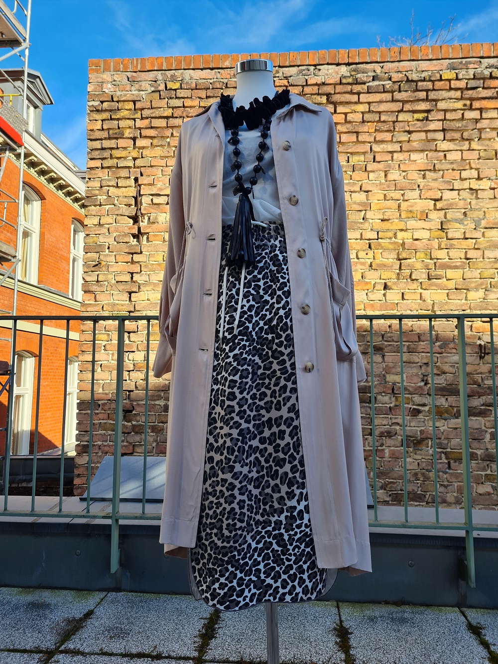 Look des Tages mit dem edlen, leichten Sommermantel von 10Days — jetzt im Sale bei uns oben – hier in der Kombination mit dem neuen Leo-Rock. Dazu gibt es ein halbtransparentes, weißes Blusenshirt und ordentlich Modeschmuck. Den Rock kann man auch über den Shop einkaufen, wir haben noch zwei Stück davon.