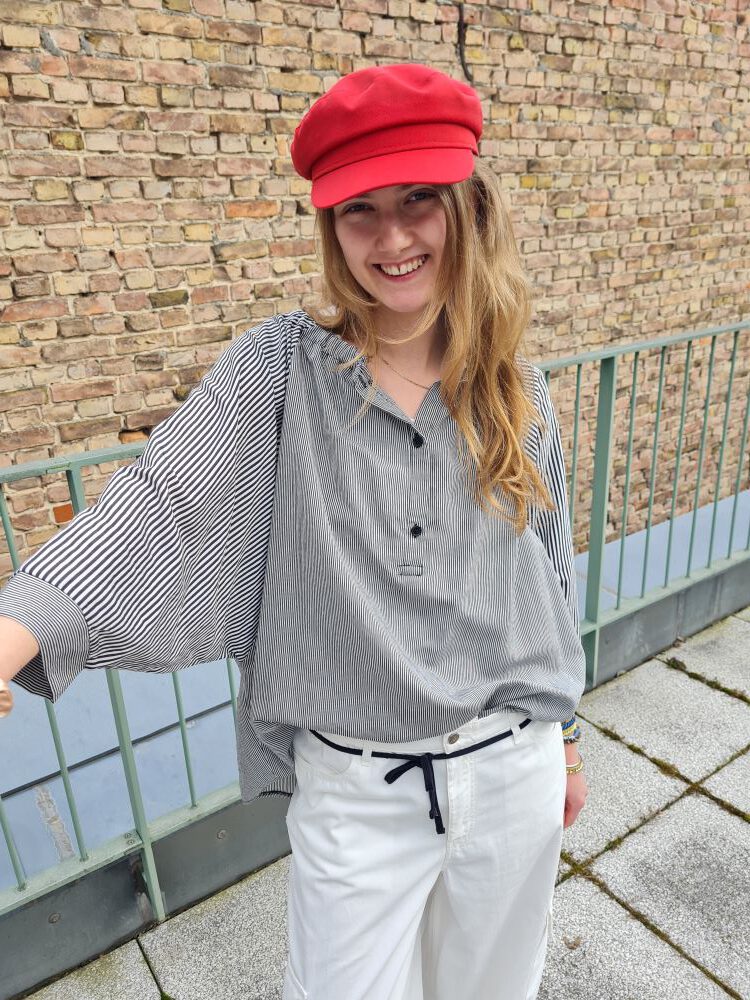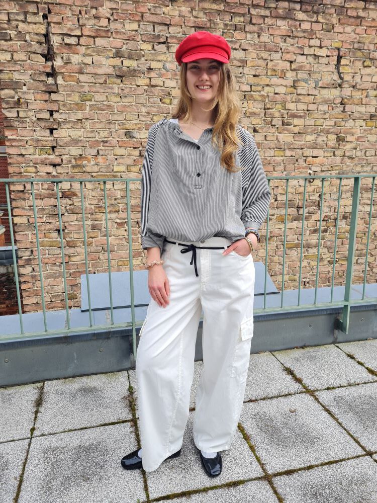 Look des Tages: Sehen Sie bei den heutigen angenehmen Temperaturen ein sommerliches Outfit mit der bequemen, gestreiften Jogpant von 10Days, einer leichten, kurzen Bluse aus Baumwolle in Hellblau und dazu die dünne Kapuzenjacke von Eve in Paradise. Diese drei Teile lassen sich vielseitig einsetzen und bringen Sie weit über den Sommer!