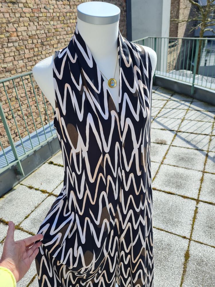 Look des Tages, heute mit einem weiteren, neu eingetroffenen Jumpsuit von unserem deutschen Label Fox`s . Jumpsuits sind immer was Besonderes, für Festlichkeiten aller Art oder auch einfach mal so. Dieser hier hat eine Culottes-Beinlänge, einen wunderschönen Ausschnitt, der in einen langen Reißverschluss mündet. Die – nicht sichtbare – Öffnung auf der Vorderseite hat große Vorteile: Sie kommen schnell rein und wieder raus. Bei uns oben oder in unserem Onlineshop, das gilt auch für die zarte Jacke. Haben Sie einen schönen Ostermontag. Ihr Team vom Modeversteck.