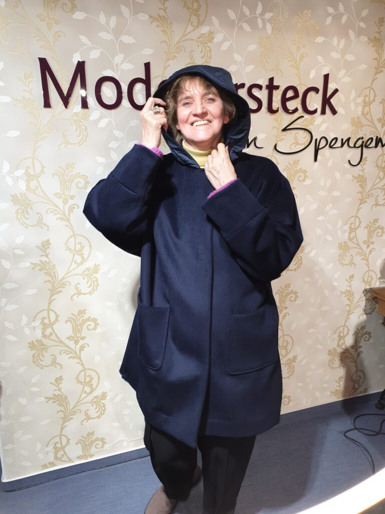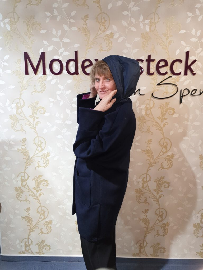 Angebot des Tages, bei Schneegestöber auf der Dachterrasse fotografiert: Sehen Sie unseren letzten Wollmantel von Fox`s, wir haben ihn jetzt noch in der Größe 38 und haben ihn preisreduziert. Kommen Sie bei Interesse schnell rauf zu uns oder reservieren sie ihn „zur Abholung“ in unserem neuen Online Shop. Unten drunter sehen Sie unsere Kollegin damit, die einfach umwerfend darin aussieht, oder? Wir wünschen Ihnen einen schönen Sonntag. Ihr Modeversteck-Team