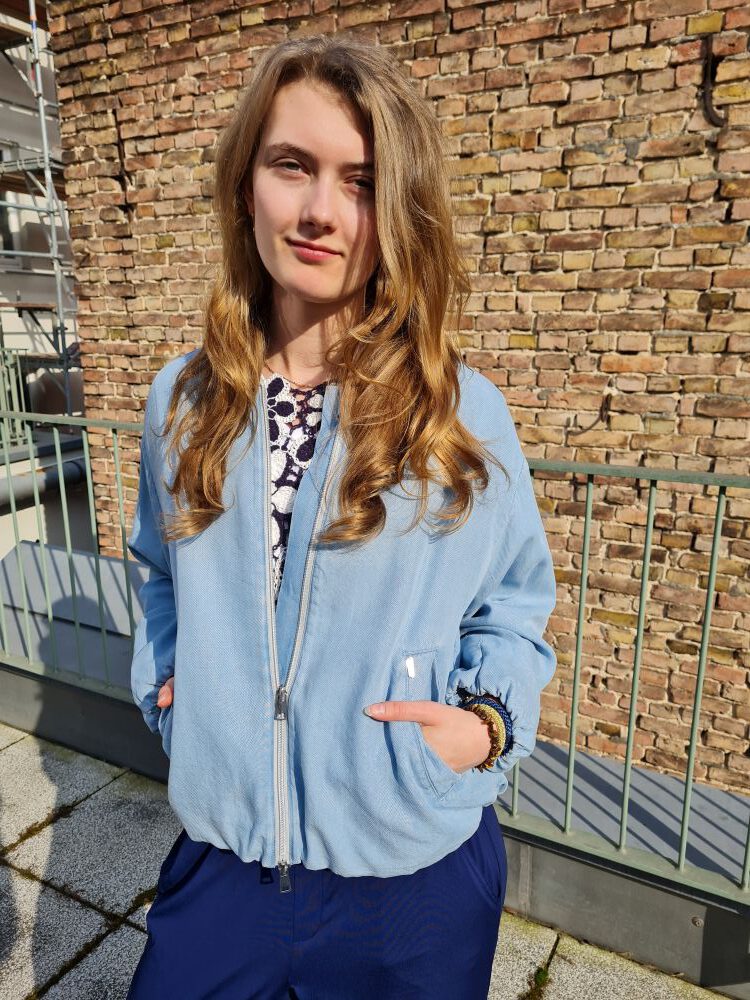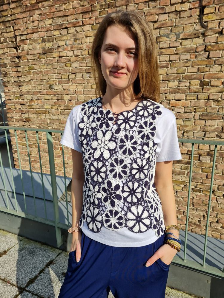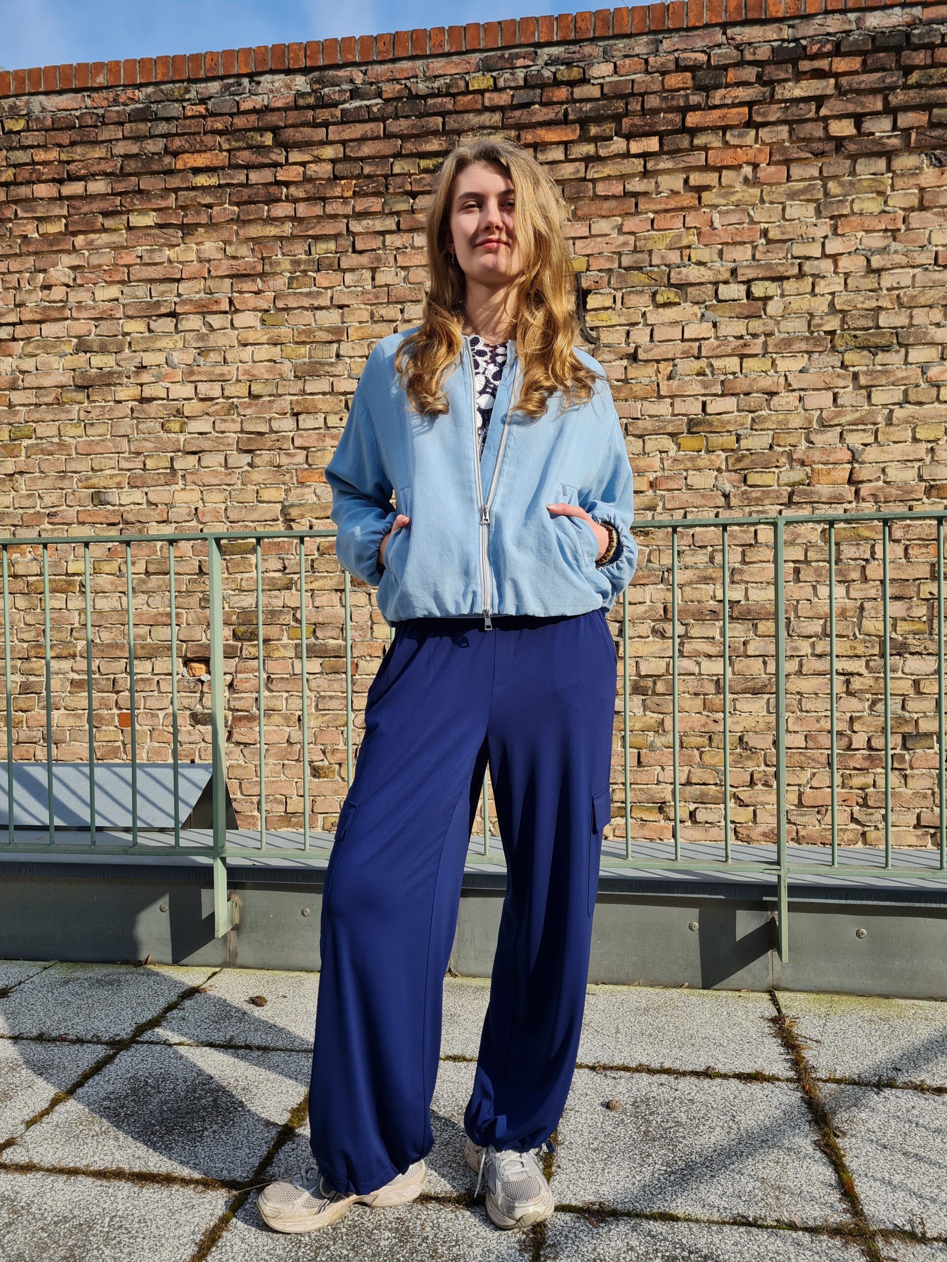 Look des Tages mit einem aktuell stark angesagten Häkeltop von OUI – man sieht es überall in den sozialen Medien und Lookbooks. Wir haben jetzt noch zwei davon, in den Größen 36 und 42. Sie sind in den Farben Weiß und Dunkelblau gehalten. Auf einem weißen T-Shirt kommen sie am besten zur Geltung, dazu zeigen wir die blaue, leichte Jogpant und einen weich fallenden Blouson aus Lyocell. Wir haben alles bei uns oben oder im Online-Shop.