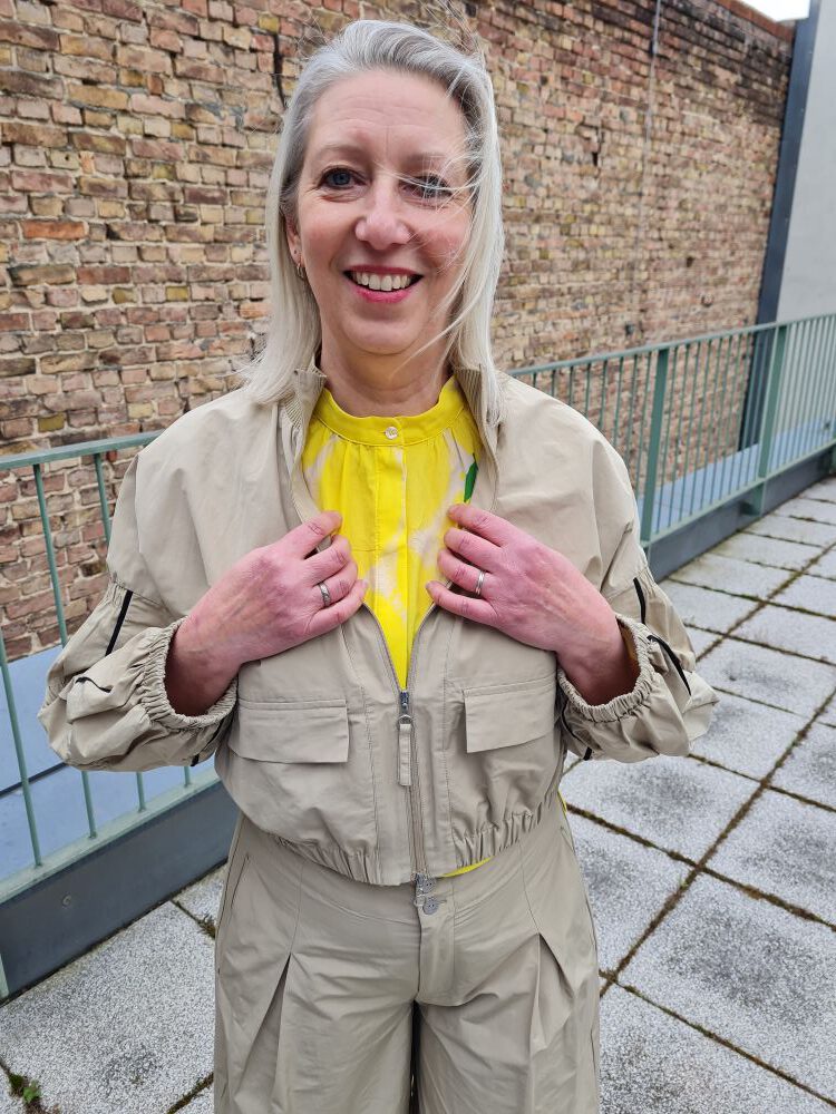 Look des Tages, heute von Kopf bis Fuß von unserem niederländischen Label Summum. Sehen Sie die stylische Balloon-Hose zusammen mit der halbtransparenten Bluse in Braun mit Beige. Dazu gibt es unsere extravagante Sommerjacke im Trenchcoat-Stil mit schwarzen Ärmeln. Alle Teile können bei uns oben anprobiert, im Onlineshop reserviert und direkt bestellt werden.