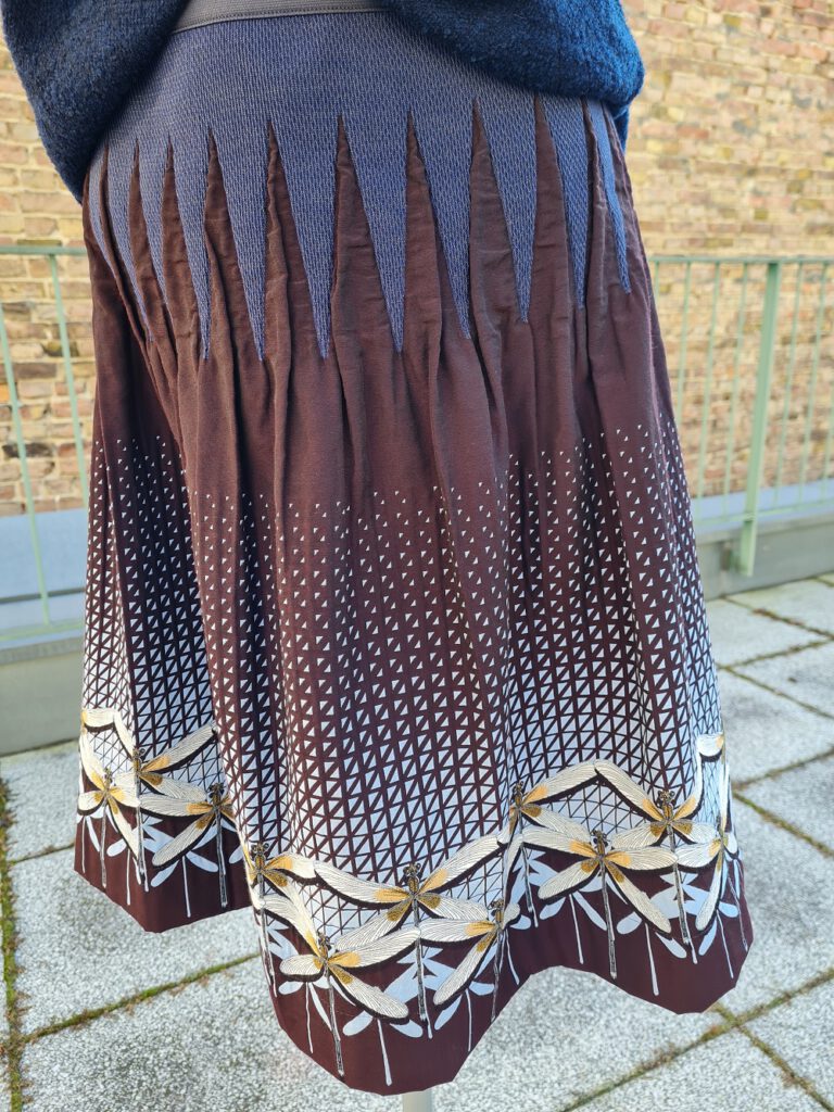 Look des Tages, für den Sonntag wieder etwas feiner. Sehen Sie unseren letzten One-Size-Rock „Libelle“ von dem deutschen Label Fox`s in der Kombination mit dem warmen, in sich gemusterten, dunkelblauen Pullover von Faber – in Deutschland gestrickt und noch zwei Mal da. Natürlich haben wir bei uns oben auch die perfekte Tasche und den passenden Schmuck von Konplott dazu. Wir wünschen Ihnen einen schönen Sonntag.