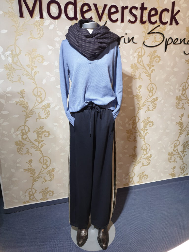 Look des Tages: Heute zeigen wir unsere mega coole Jogpant mit extra weiten und langen Beinen (und tiefem Schritt) von 10Days, wir haben sie noch zwei Mal bei uns oben. Dazu gibt es den edlen Viskose-Pullover von Faber, mit einem V-Ausschnitt und seidigem Schimmer. Beide Teile sind ab sofort auch in unserem neuen Online Shop zu finden.