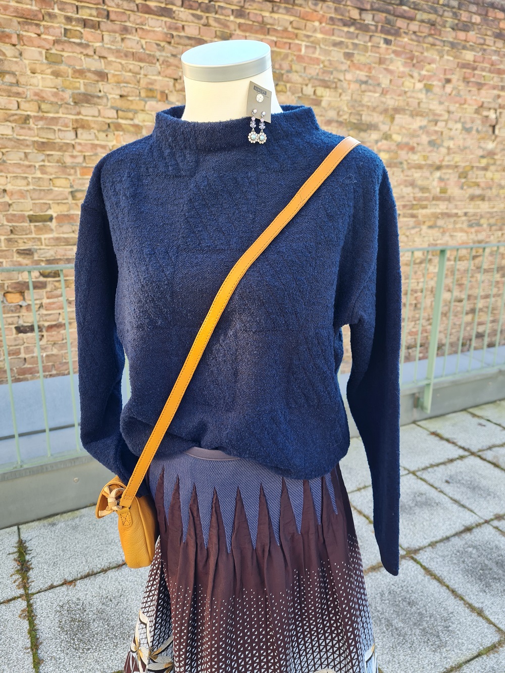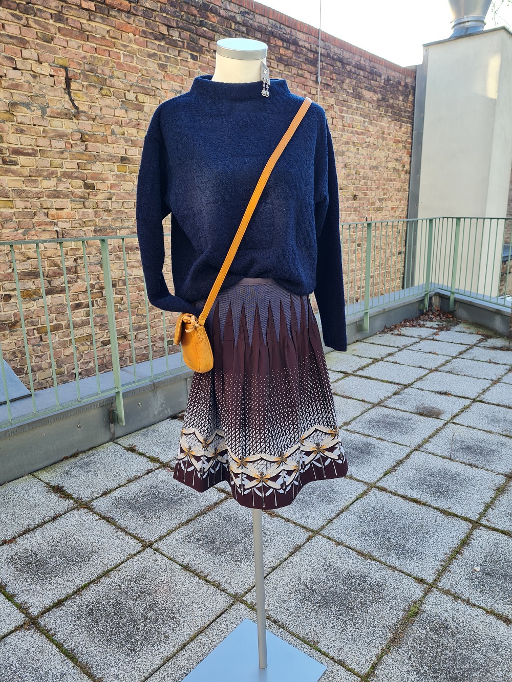 Look des Tages, für den Sonntag wieder etwas feiner. Sehen Sie unseren letzten One-Size-Rock „Libelle“ von dem deutschen Label Fox`s in der Kombination mit dem warmen, in sich gemusterten, dunkelblauen Pullover von Faber – in Deutschland gestrickt und noch zwei Mal da. Natürlich haben wir bei uns oben auch die perfekte Tasche und den passenden Schmuck von Konplott dazu. Wir wünschen Ihnen einen schönen Sonntag.